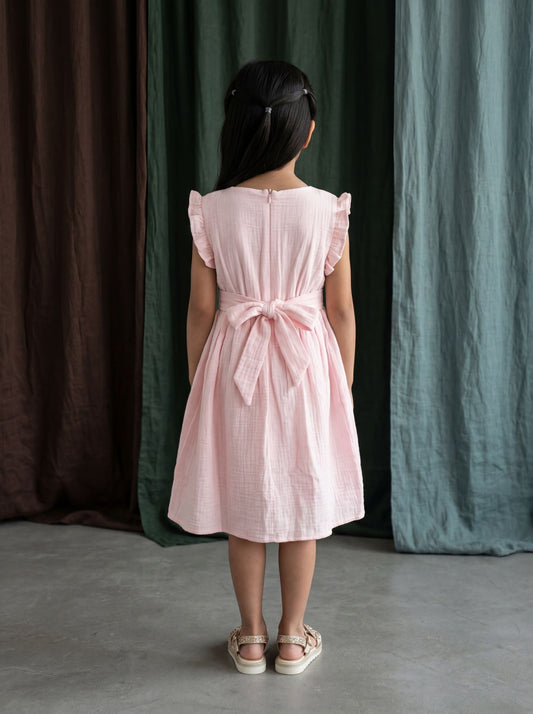 Cotton Gauze Fit & Flare Dress Featuring Ocean-Inspired Embroidery & Frill Sleeves